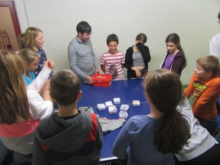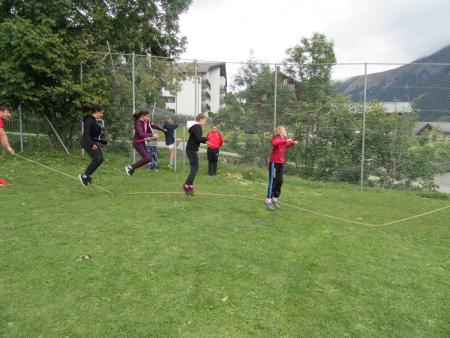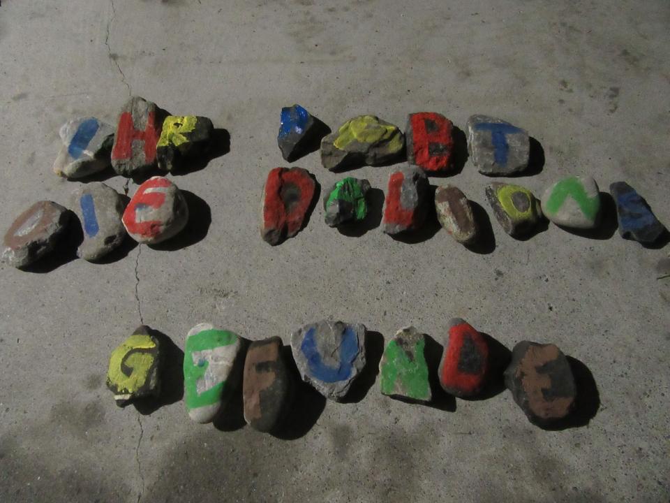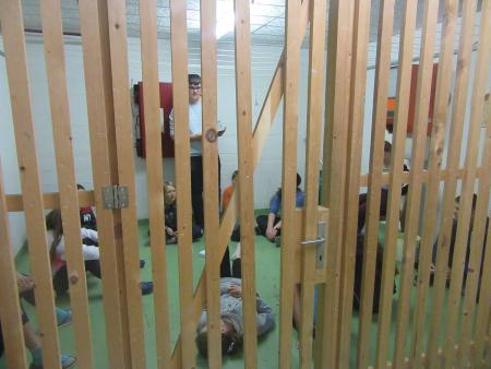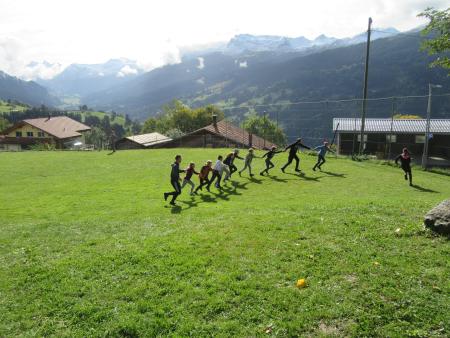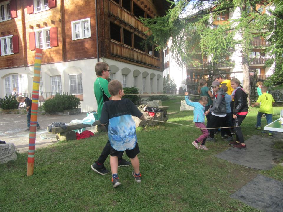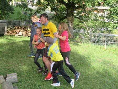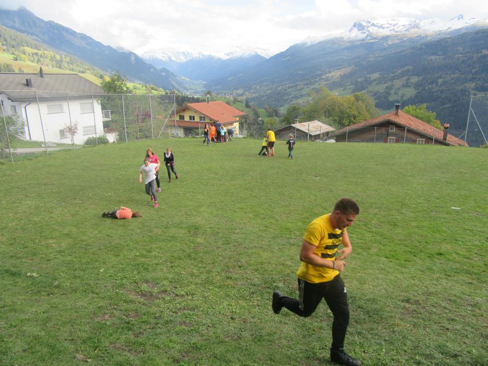 In den Gruppenzeiten wurde das Fangen schon fleissig trainiert. Am Nachmittag haben wir uns erstmals richtig mit der Umgebung vertraut gemacht, damit wir am Abend beides umsetzen konnten. Nach einigen Minuten intensivem Tüfteln waren wir dem Ziel zum Greifen nahe. Die vollständige Aneinanderreihung der 25 mit Buchstaben beschrifteten Steine, ergab die Botschaft: Ihr hat die Daltons gefunden! In diesem Augenblick schossen die Daltons an uns vorbei und die grosse Verfolgungsjagd startete. Das Training hat sich gelohnt, binnen kürzester Zeit konnten wir die Daltons im Gefängnis abliefern und den restlichen Abend gemütlich ausklingen lassen.