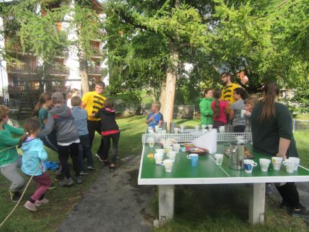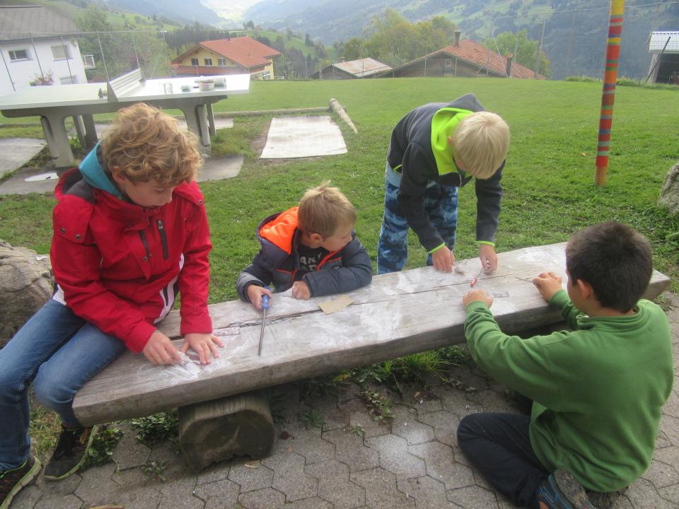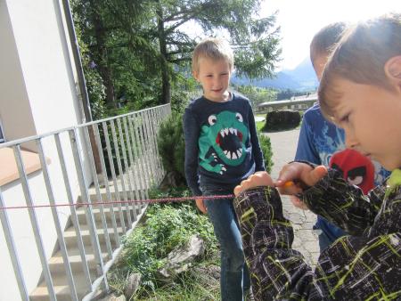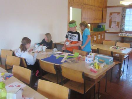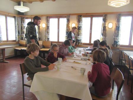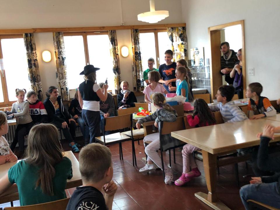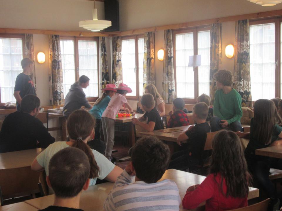 Wir sind dem Hilferuf von Lucky Luke gefolgt! Und in den Wilden Westen eingetaucht. Während der Anreise auf dem modernen Pferd wurde bereits eifrig über Lucky Lukes Talente diskutiert. Im mehrstöckigen Lagerhaus sind tatsächlich alle angekommen, obwohl vor lauter Vorfreude ein paar zu früh aus- und wieder eingestiegen sind. Die Zimmer sind bezogen (Bettenanziehen, könnte auch zu Hause noch geübt werden für nächstes Jahr ;) ) und die Gruppenzimmer dekoriert. Das Chaos ist angerichtet! Das traditionell bündnerische Lagerhaus ist nicht wieder zu erkennen. Die leckeren mitgebrachten Kuchen wurden zum Zvieri genossen und haben den Kindern die Ankunft versüsst.