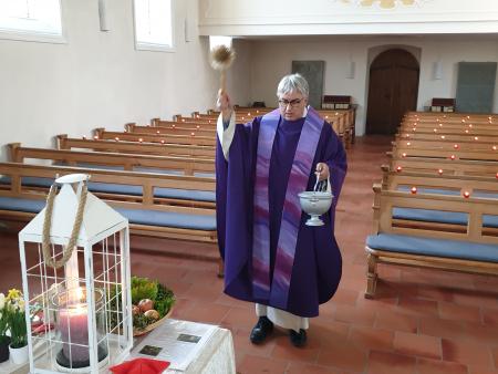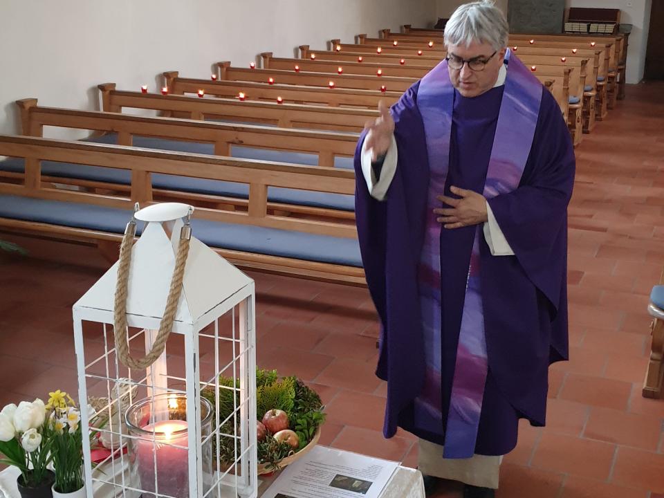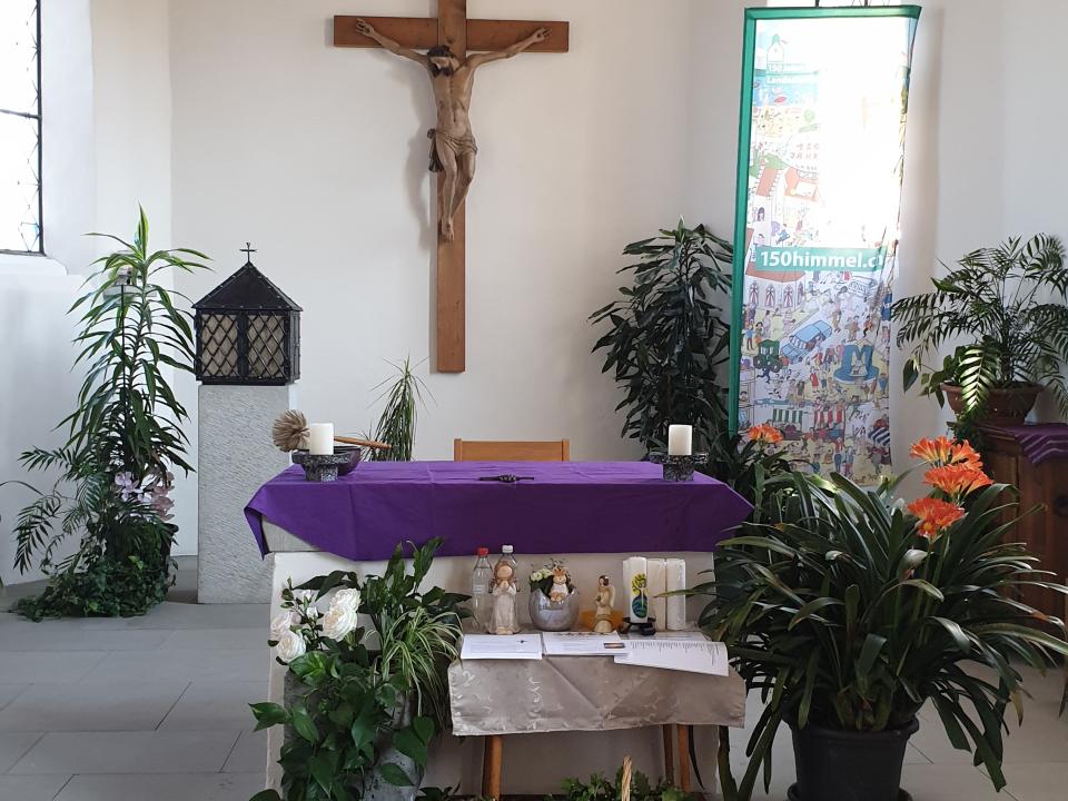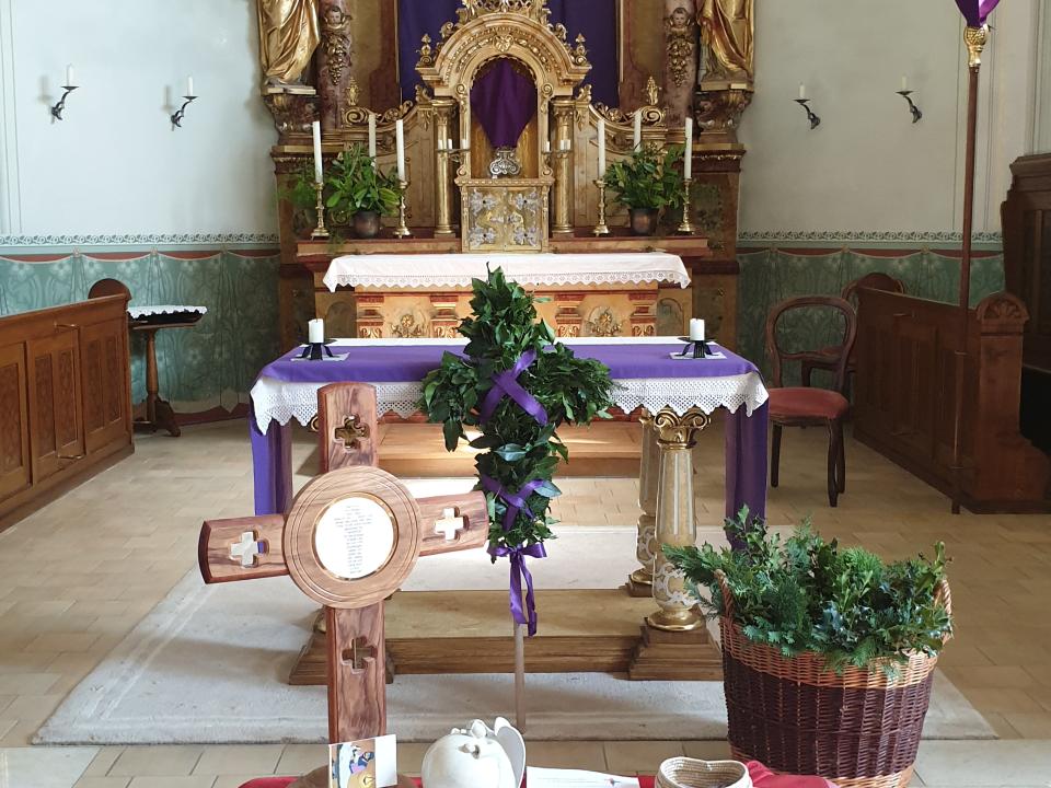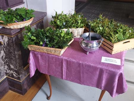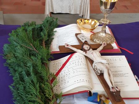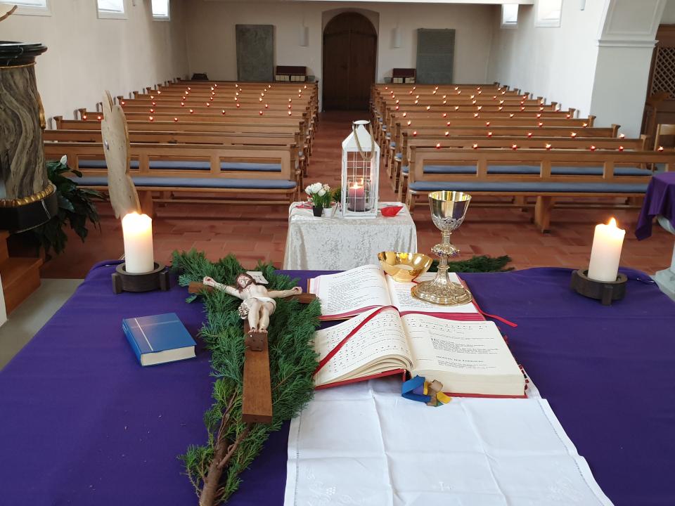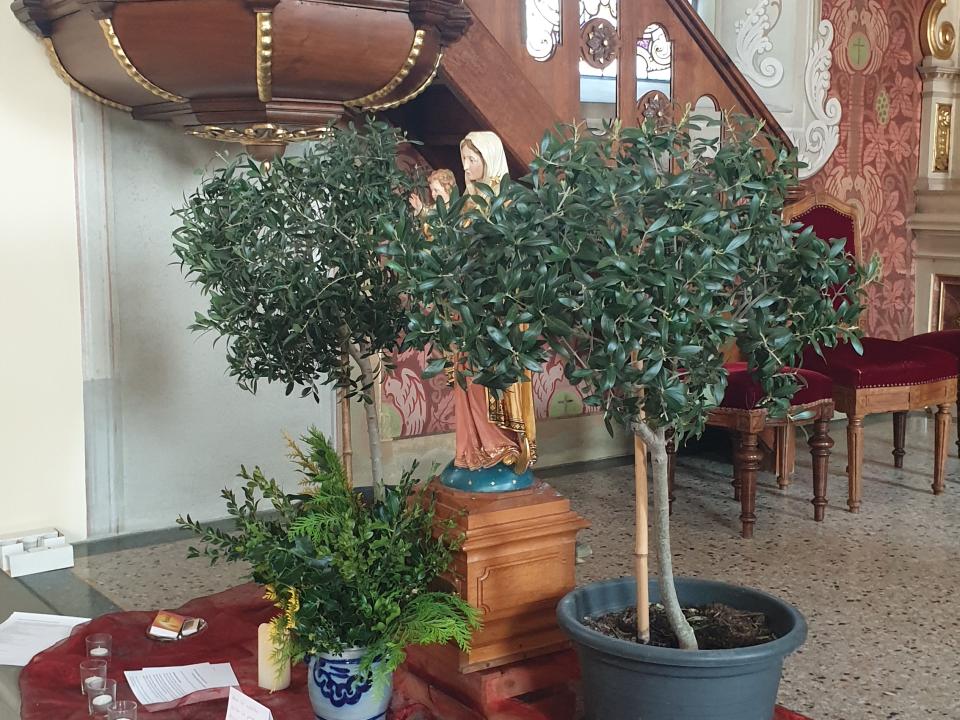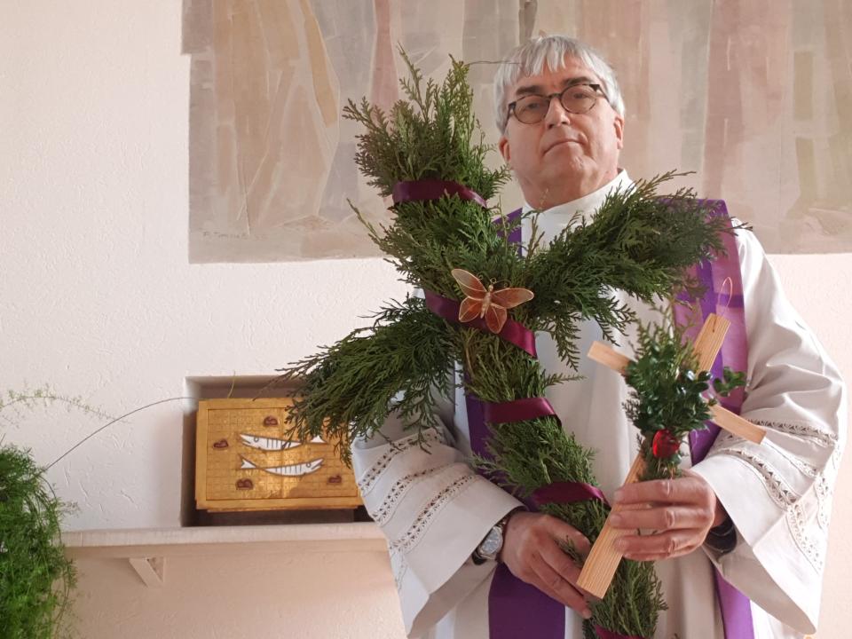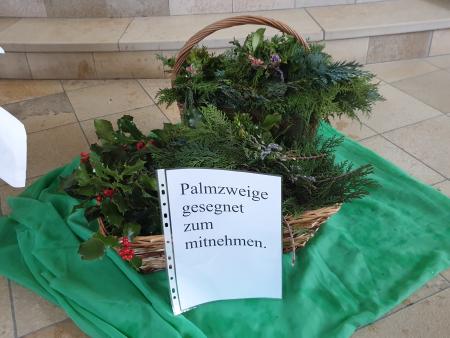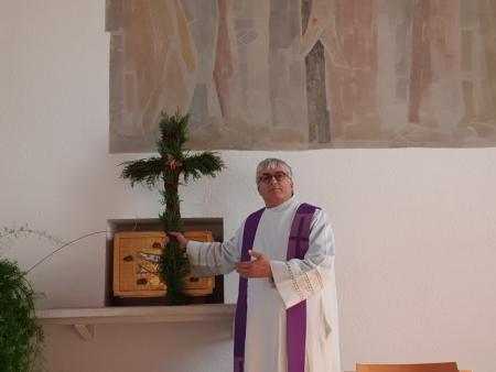Am Samstag vor Passionssonntag wurde ein Gottesdienst gefeiert im Blick auf den Palmsonntag. Pfarrer Marcel Ruepp hat in einem Gottesdienst mit einer kleinen Gruppe den Einzug Jesu nach Jerusalem gefeiert. Anlässlich dieser Feier wurden Palmzweige für den ganzen Pastoralraum gesegnet.