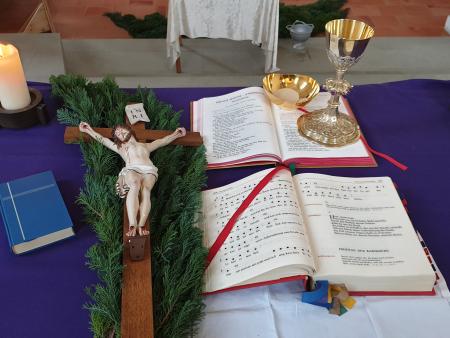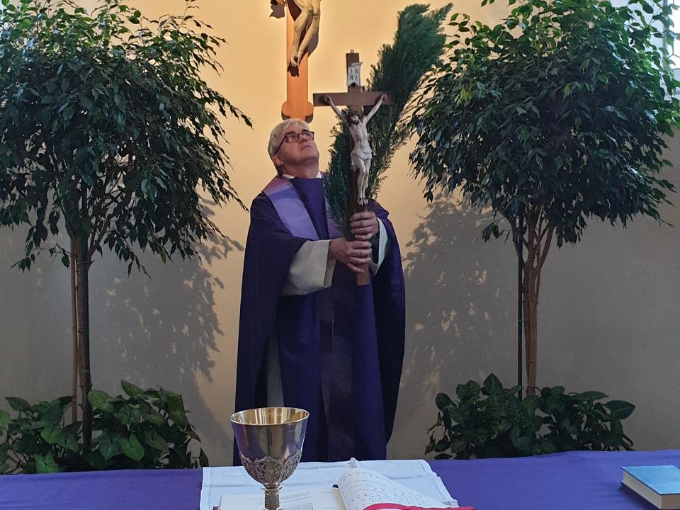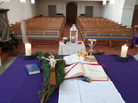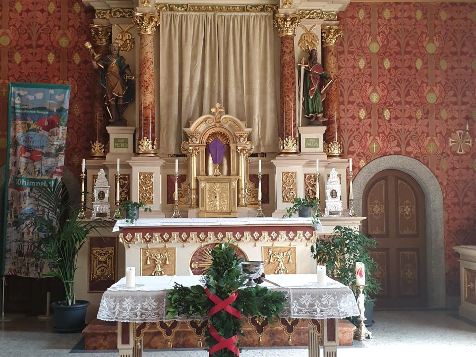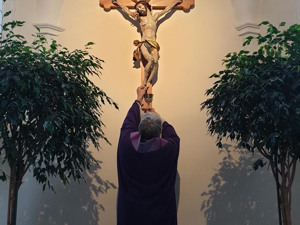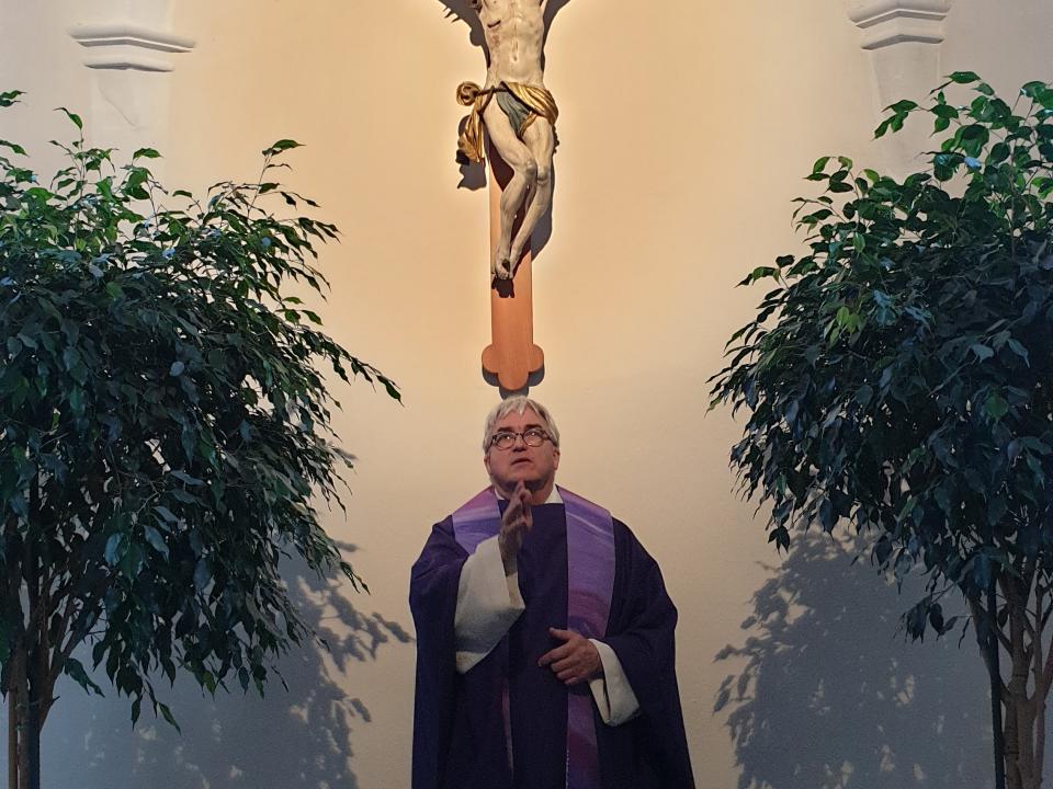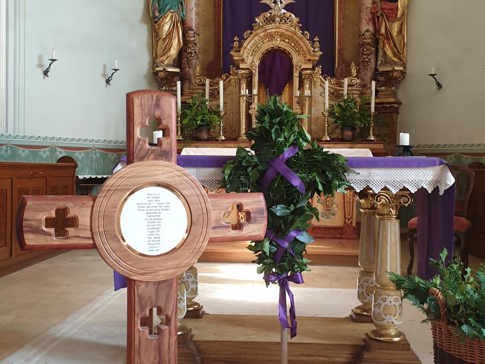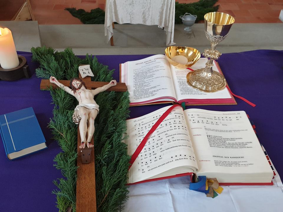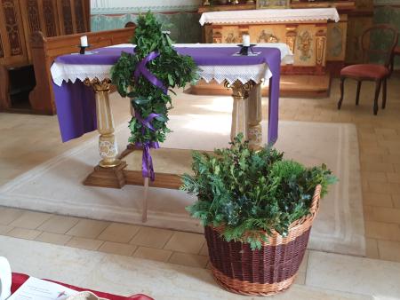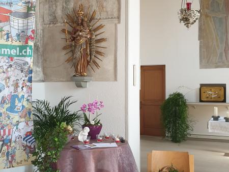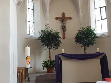 Am Samstag vor Passionssonntag wurde ein Gottesdienst gefeiert im Blick auf den Palmsonntag. Pfarrer Marcel Ruepp hat in einem Gottesdienst mit einer kleinen Gruppe den Einzug Jesu nach Jerusalem gefeiert. Anlässlich dieser Feier wurden Palmzweige für den ganzen Pastoralraum gesegnet.