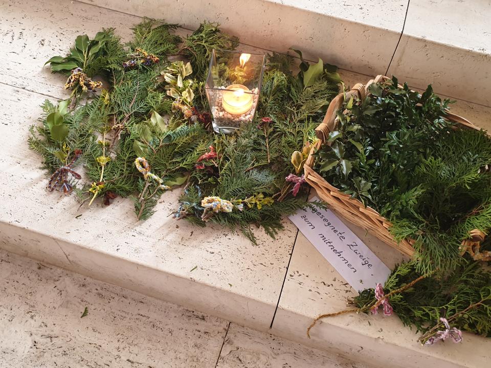 Am Samstag vor Palmsonntag wurde die Segnung zusätzlich noch in allen unseren Pastoralraumkirchen vorgenommen. Nun stehen die gesegneten Zweige bereit, und warten darauf, dass sie in den Häusern hinter das Kreuz gesteckt werden. Mit diesem schönen Zeichen drücken wir unser Vertrauen aus, dass wir mit Jesus Christus den triumphalen Weg der Macht dieser Welt verlassen und mit ihm abbiegen auf den Kreuzweg.