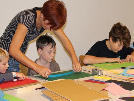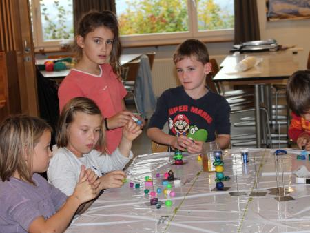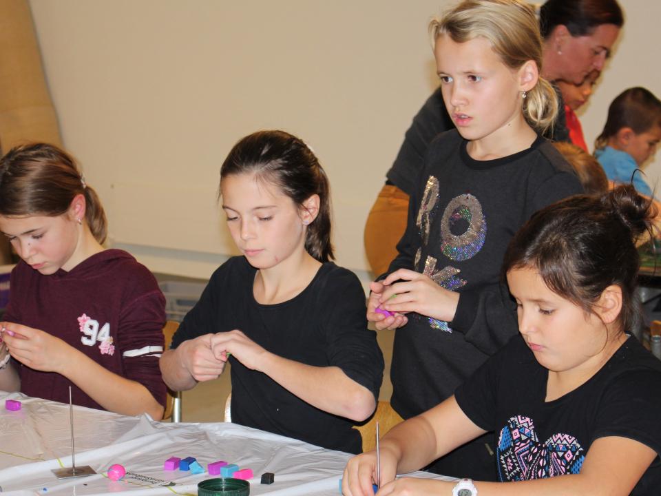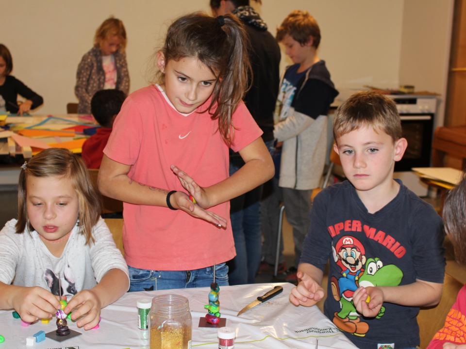 Vier kreative Frauen; Käthi Holenstein, Hosenruck - Sonja Kern, Wertbühl – Sabrina Widler, Mettlen und Nicole Küttel, Wuppenau - haben sich auch dieses Jahr einiges überlegt und viel Material angeschleppt. Was ist wohl aus all den Kerzen, Servietten, dem Fimo und dem Papier entstanden? Ich verrate es nicht, denn vielleicht ist ja auch ein Weihnachtsgeschenk für Sie mit dabei. Der Umgang mit verschiedenen Hilfsmitteln verlangte einiges an Fingerfertigkeit und Geschick, die Kinder haben dies mit etwas Unterstützung alle sehr gut gemeistert.