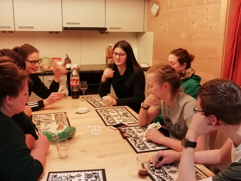 Auf Schlitten und Ski ging es den ganzen Tag die Pisten rauf und runter! Wir waren nicht nur sportlich unterwegs, auch das gemütliche Zusammensein haben wir mit Kartenspielen, Fondue essen und gemütlichem Plausch genossen.