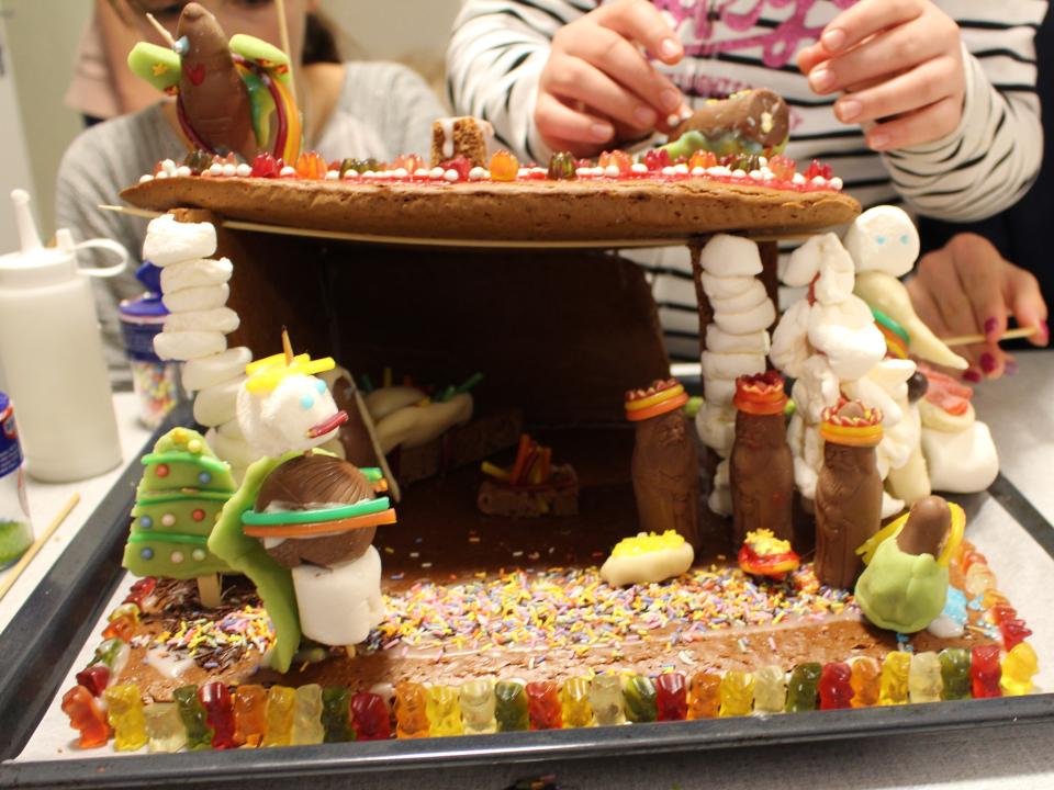 Mit ganz viel Zucker und allerlei Süsskram entstand eine zauberhafte Krippe, bestückt mit allen wichtigen Details, welche zum Essen eigentlich viel zu Schade war. Nebenbei lag der Duft vom selbstgemachten Ministrantenpunsch in der Luft, welcher abgefüllt in kleinen Flaschen nicht nur unsere Messmer über die Weihnachtszeit erfreuen wird.